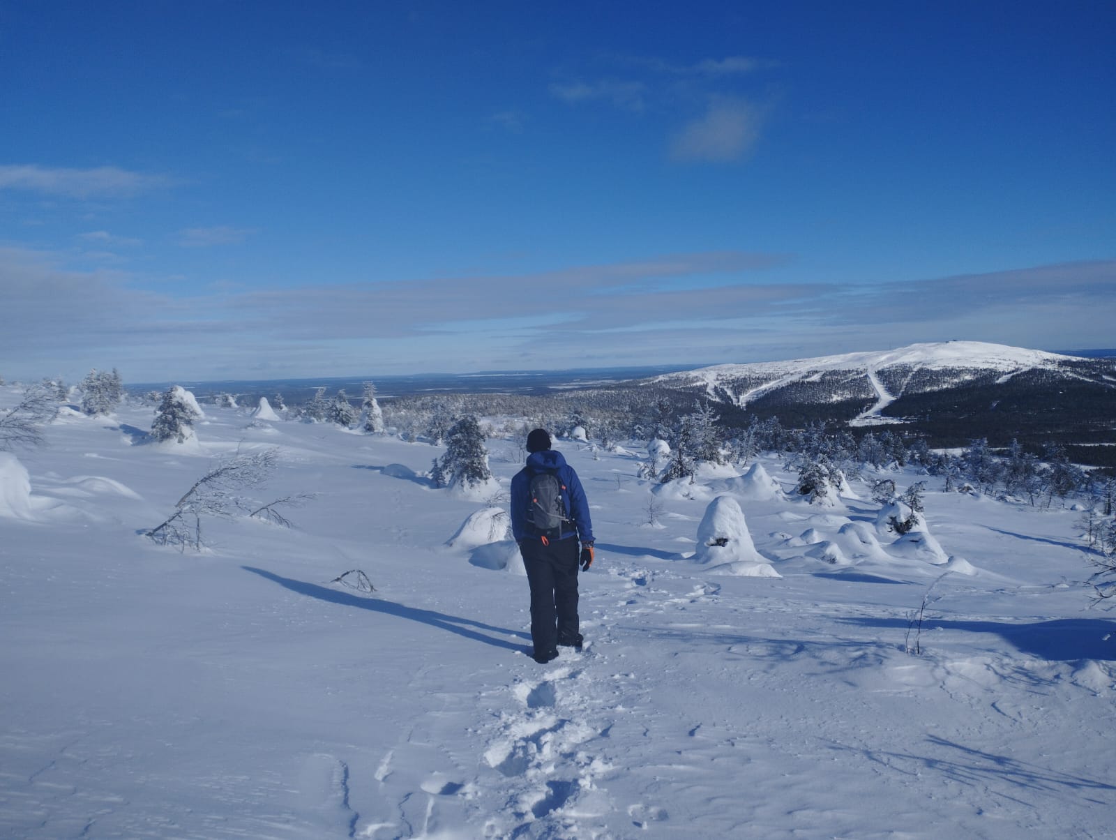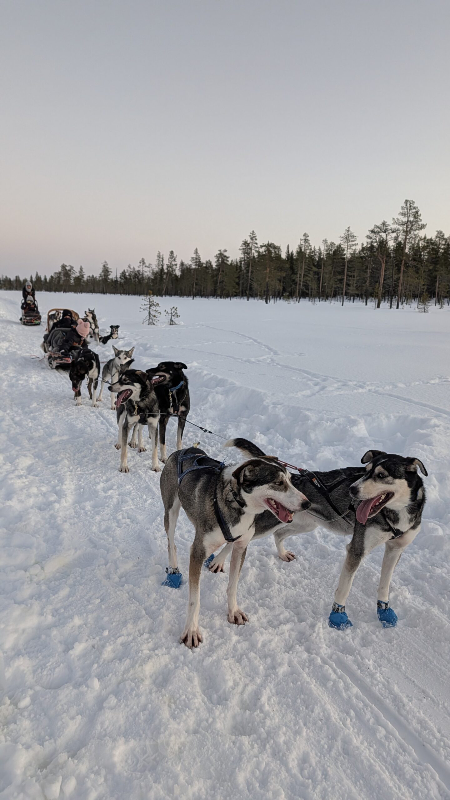 La sera lo spettacolo inizia molto presto. Già a metà pomeriggio la fioca luce blu della Kaamos avvolge tutto, creando un'atmosfera surreale che prepara al buio totale. Il fuoco che accenderemo diventerà il nostro sole privato: fonte di luce, cucina e cuore pulsante della casa. Quando le fiamme si abbassano, resteranno solo le stelle e le nostre torce frontali a illuminare la via. Febbraio è una stagione eccezionale per l'Aurora Boreale: con il buio che regna sovrano, la danza verde può apparire in qualsiasi momento. E noi saremo lì, sulla soglia di casa, pronti a restare a bocca aperta.